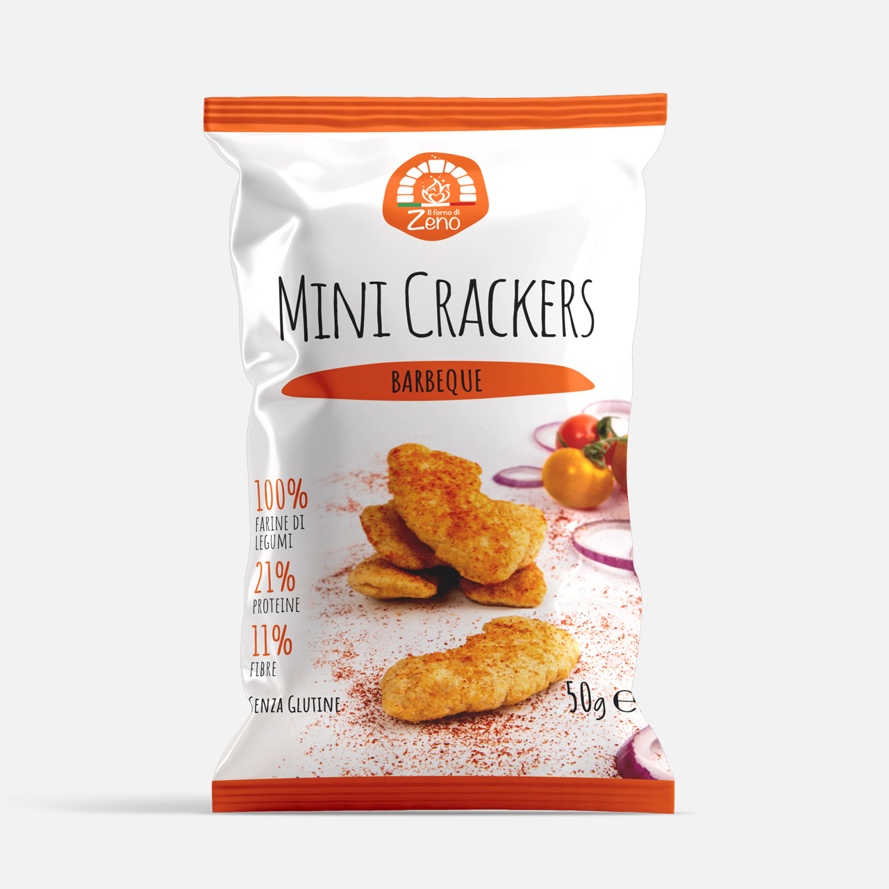 Mini crackers di legumi al barbeque cotti al forno senza glutine.