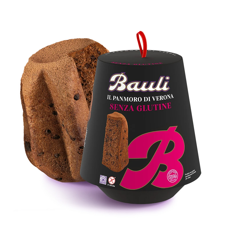 Acqua, amido di mais, uova, burro (latte), gocce di cioccolato fondente 8,9% (zucchero, pasta di cacao, burro di cacao; emulsionanti: lecitina di girasole; aroma naturale di vaniglia), zucchero, amido di riso, farina di riso, sciroppo di zucchero invertito; addensanti: idrossipropilmetilcellulosa, gomma di xantano; cacao magro in polvere (2,1%), miele, sciroppo di glucosio-fruttosio, fibra di psyllium, tuorlo d’uovo, alcool, aromi; emulsionanti: mono- e digliceridi degli acidi grassi; lievito madre (farina di riso,acqua), lievito di birra, aromi naturali, sale.