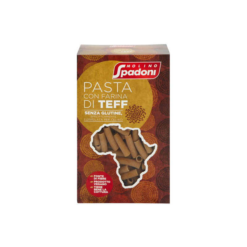 Ingredienti: Farina di teff 25%, farina di mais giallo, farina di mais bianco, farina di riso semigreggio.